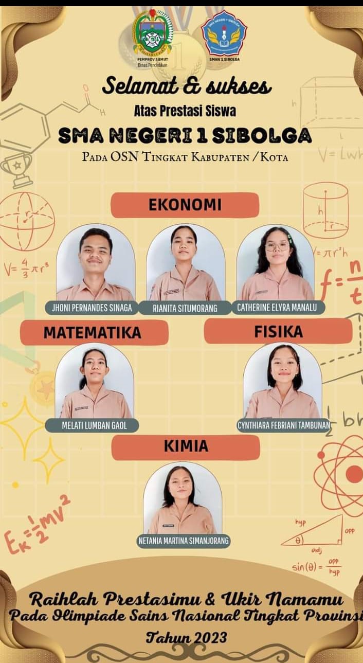 ![]() | Juara KSN (Kompetisi Sains Nasional) Tahun 2023 Juara KSN (Kompetisi Sains Nasional) dari SMA Negeri 1 SIbolga. |